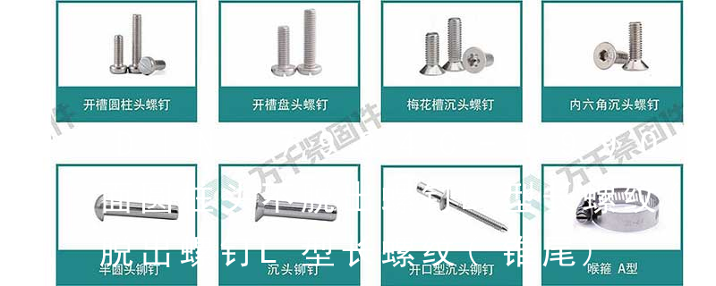 B:球面圆柱头; C:圆柱头; F(K):沉头; H:六角头;HW:六角头带垫圈; O:半沉头; P:平元头; R:半元头;PW:平元头带垫圈; T:大扁头; V:蘑菇头;④ 螺钉牙型 A:自攻尖尾(日标第1种)疏 1)开槽普通螺钉多用于较小零件的连接。它有盘头螺钉、圆柱头螺钉、半沉头螺钉和沉头螺钉。盘头螺钉和圆柱头螺钉的钉头强度较高,瑁在普通的部件连接上;半沉头螺钉的头部呈弧形,安装后它的顶端略外露,且美观光滑,一般用